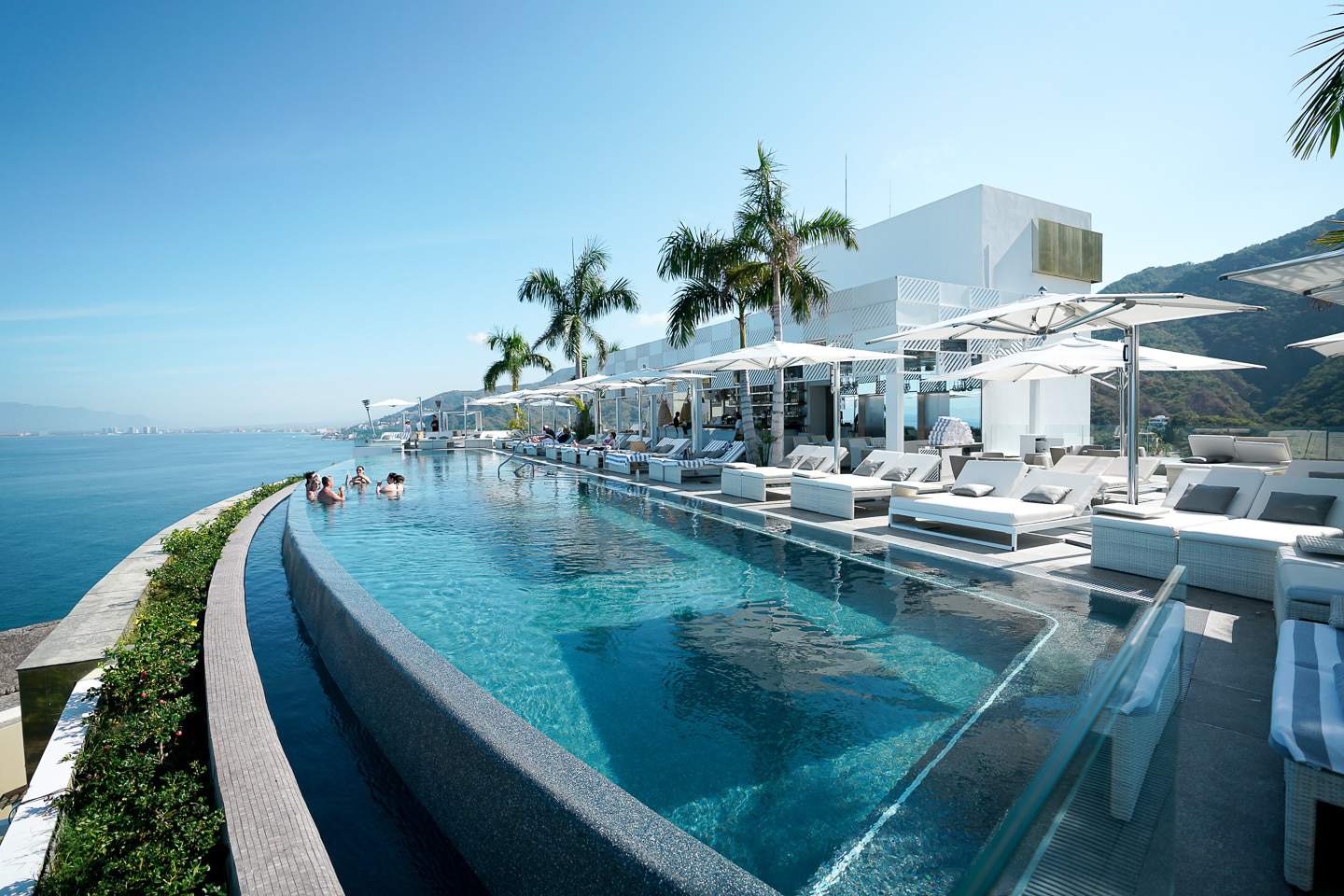 Is an adults-only resort located in Puerto Vallarta, Mexico, offering a luxurious escape with breathtaking views of Banderas Bay. The hotel features 443 modern suites, each with private balconies and ocean views, designed for comfort and elegance. Guests can enjoy dining at seven on-site restaurants, serving diverse cuisines ranging from Mexican and Asian to Italian, along with five bars, including a rooftop lounge with stunning panoramas. The resort boasts two infinity pools and direct beach access, providing ample opportunities for relaxation and water activities. Amenities include a state-of-the-art fitness center, a tranquil spa, and daily entertainment like live music and themed parties. With complimentary Wi-Fi, concierge services, and nearby access to Puerto Vallarta's vibrant nightlife and cultural attractions, the hotel caters to both leisure and adventure seekers. Perfect for romantic getaways, the property offers a sophisticated yet lively ambiance in a stunning coastal setting.