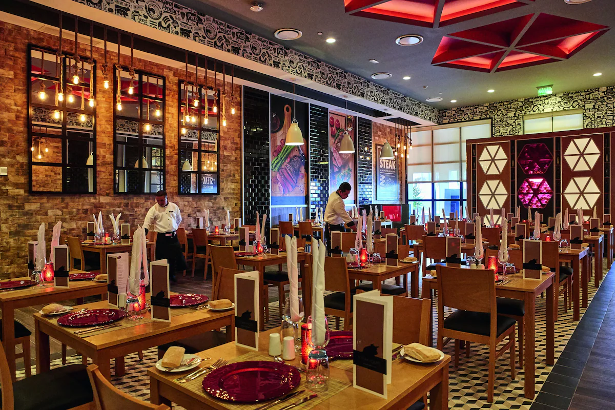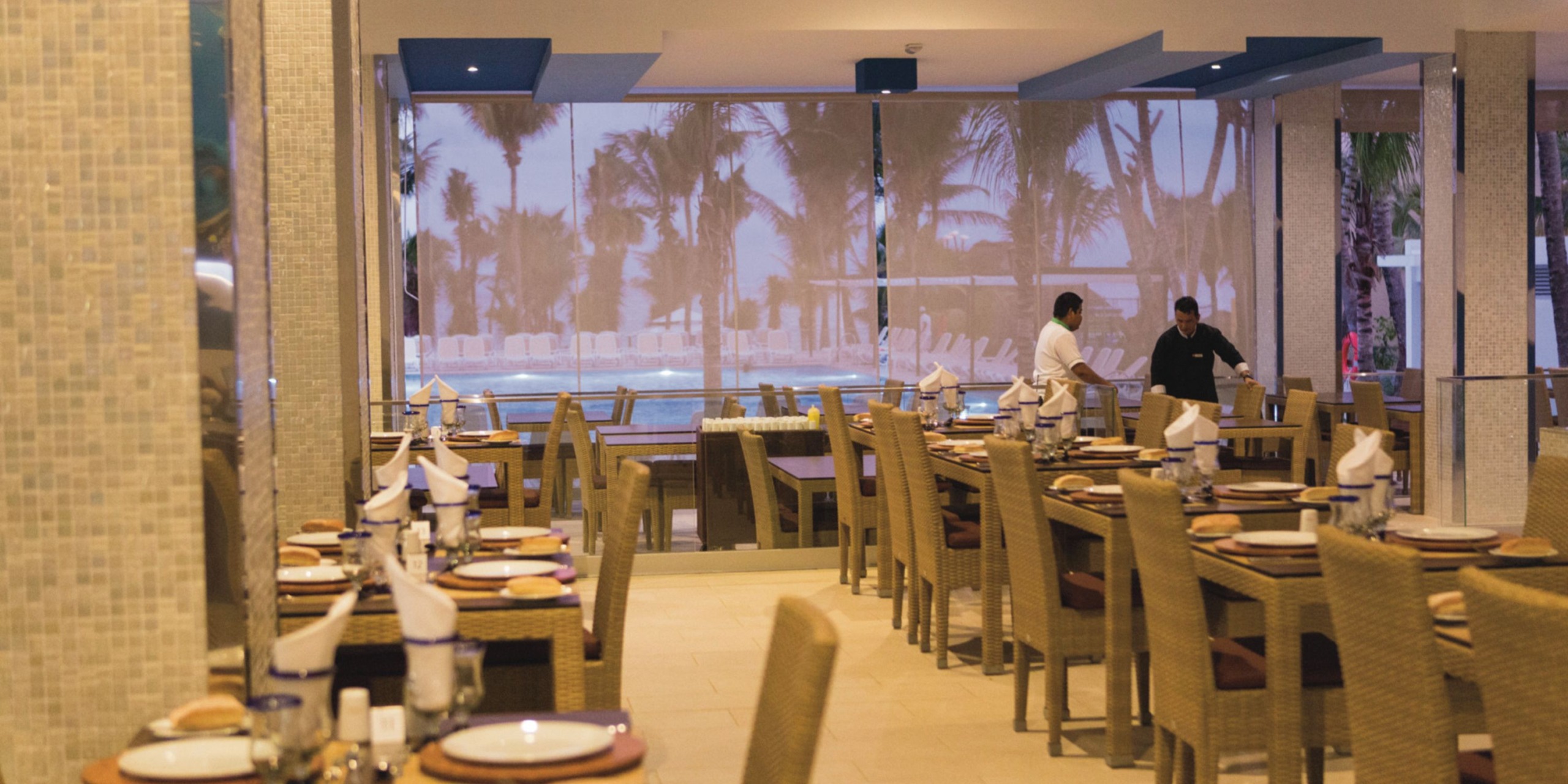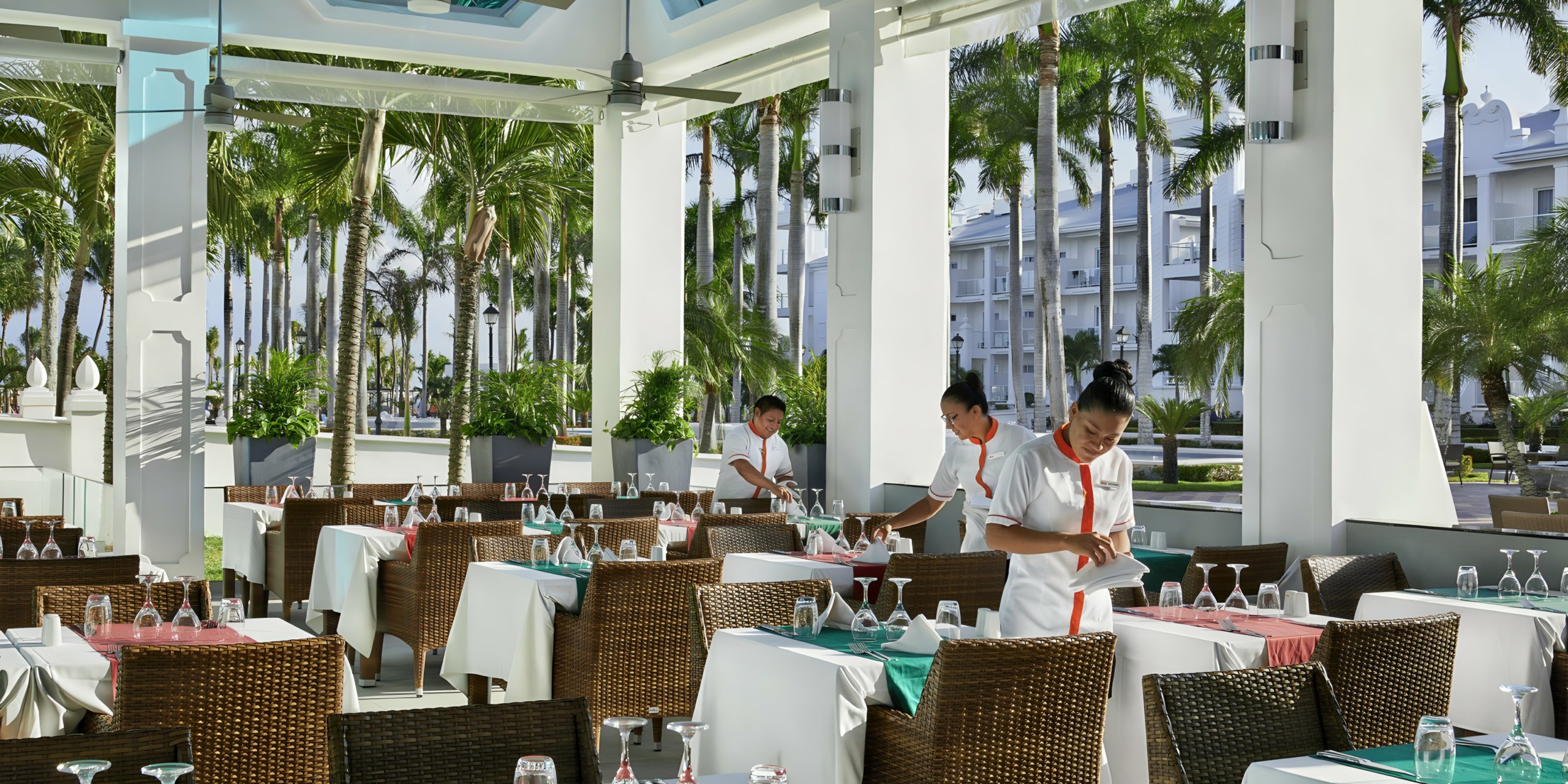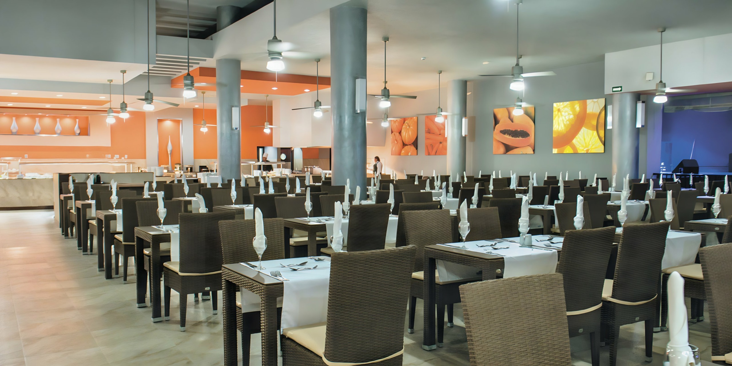 Located in Playa del Carmen's Playacar complex, offers over 600 rooms equipped with modern amenities such as minibars, beverage dispensers, satellite TVs, air conditioning, safes, and private balconies or terraces. Guests can enjoy four swimming pools, including one with a swim-up bar, and a children's pool featuring water slides. The resort boasts a diverse culinary scene with multiple dining options: the main restaurant "Rosa Roja" with a terrace, "Bamboo" Asian restaurant, "Rinascita" Italian restaurant, "Black Cow" Steakhouse, and the "Beach Club" snack restaurant/Mexican restaurant located on the beach. For beverages and relaxation, there are several bars, including "La Veranda" lobby bar, "La Fiesta" lounge bar with terrace, a 24-hour sports bar, and "Coco's Bar" poolside bar with a swim-up section. Additional amenities encompass a free gym, the RiuLand kids' club, a children's playground, and access to the "Pacha" discotheque. The resort also offers a variety of sports and activities, such as windsurfing, catamaran sailing, kayaking, bodyboarding, snorkeling, and a volleyball court. Guests can also enjoy group fitness activities in the RiuFit area and one introductory scuba diving lesson in the pool.