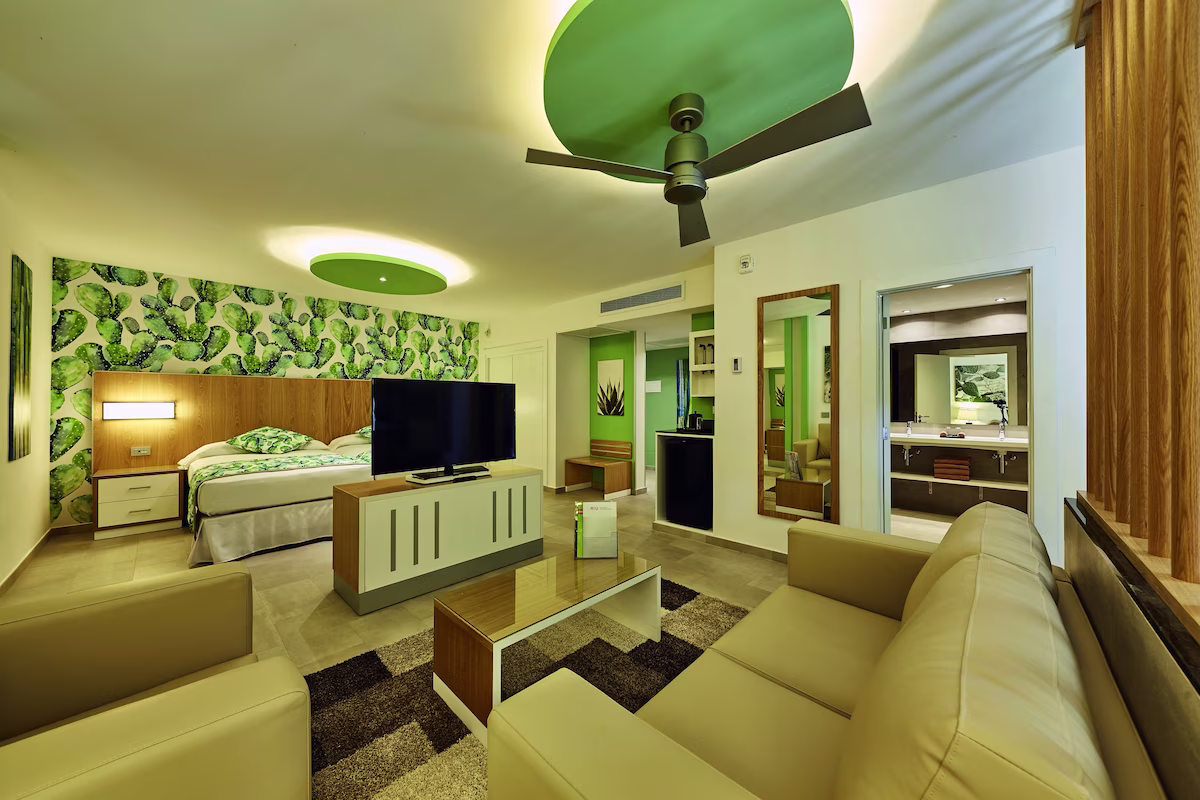 Is a beachfront resort located in Playa del Carmen, Mexico. It features 396 rooms, all designed with a modern and tropical touch, offering amenities like air conditioning, minibars, and balconies or terraces. The resort has four restaurants, including an international buffet and specialty dining options like Asian, Italian, and steakhouse cuisine. There are three outdoor pools, including a children’s pool with slides, plus a swim-up bar for adults. Guests can enjoy a private white-sand beach, free loungers, and non-motorized water sports like kayaking and snorkeling. The Renova Spa offers massages and beauty treatments, while the gym and sports courts provide fitness options. Daily entertainment includes live shows, themed parties, and activities for all ages. The RiuLand Kids’ Club keeps younger guests entertained with supervised games and activities. Guests also have access to nearby Riu resorts for additional dining and entertainment. With its vibrant atmosphere and all-inclusive perks, Riu Playacar is a great choice for families, couples, and friends.
